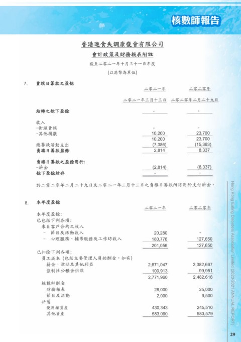 核數師報告 Hong Kong Eating Disorders Association Limited (2020-2021 ANNUAL REPORT) 29