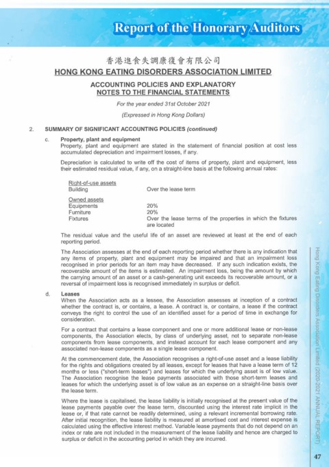 Report of the Honorary Auditors Hong Kong Eating Disorders Association Limited (2020-2021 ANNUAL REPORT) 47