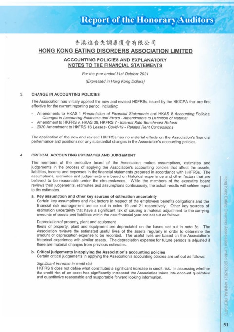 Report of the Honorary Auditors Hong Kong Eating Disorders Association Limited (2020-2021 ANNUAL REPORT) 51