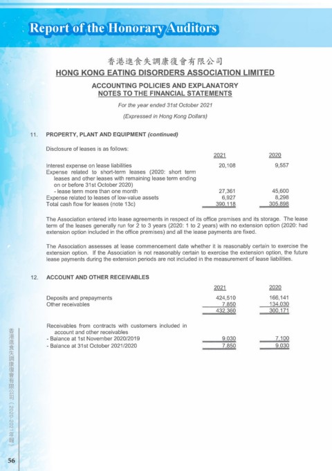 Report of the Honorary Auditors 香港進食失調康復會有限公司 ( 2020-2021 年報) 56