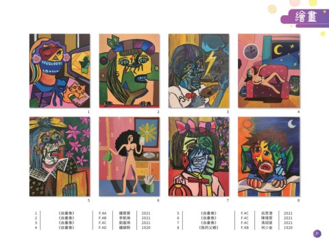 繪畫 1 2 3 4 5 6 7 8 1 《自畫像》 F.4A 鍾蓉蓉 2021 5 《自畫像》 F.4C 呂思澄 2021 2 《自畫像》 F.4B 李凱琳 2021 6 《自畫像》 F.4C 陳禧雯 2021 3 《自畫像》 F.4C 劉嘉琪 2021 7 《自畫像》 F.4C 馮翊旻 2021 4 《自畫像》 F.4D 鍾穎熙 1920 8 《我的父親》 F.4B 何少金 1920 15