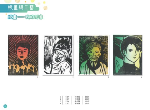 版畫與工藝 版畫- 我的形象 1 2 3 4 1 F.3A 林學哲 1617 2 F.3A 何承燻 1617 3 F.3A 楊志臻 1617 4 F.3C 張智健 1617 22