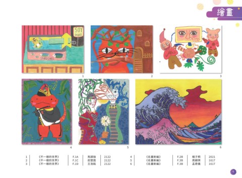 繪畫 1 2 3 4 5 6 1 《不一樣的世界》 F.1A 馬頴珈 2122 4 《名畫新編》 F.2B 楊子桐 2021 2 《不一樣的世界》 F.1C 莊楚茵 2122 5 《名畫新編》 F.3B 周穎琪 1617 3 《不一樣的世界》 F.1D 王浩銘 2122 6 《名畫新編》 F.3B 孟君儀 1617 5