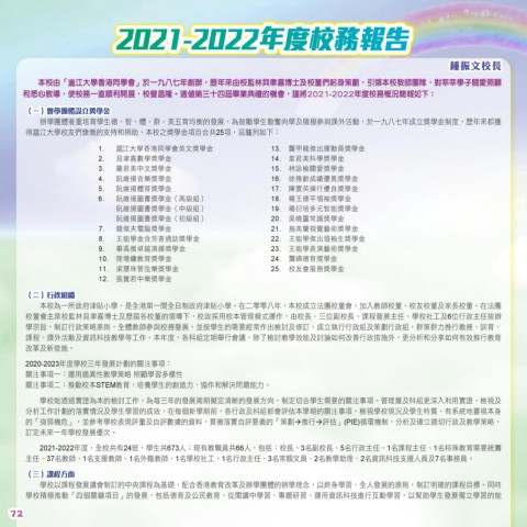 和悉心教導,使校務一直順利開展,校譽昌隆。適值第三十四屆畢業典禮的機會,謹將2021-2022年度校務概況簡報如下: