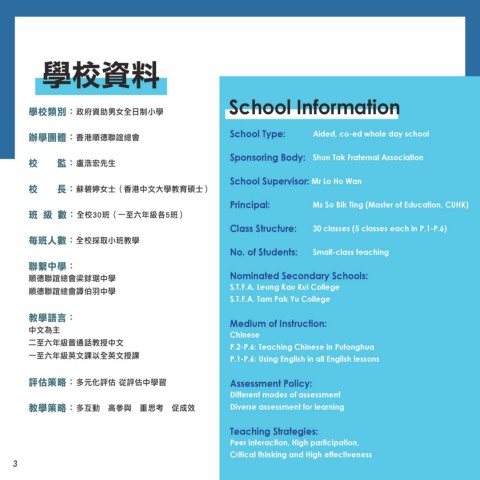 校 長:蘇碧婷女士(香港中文大學教育碩士)