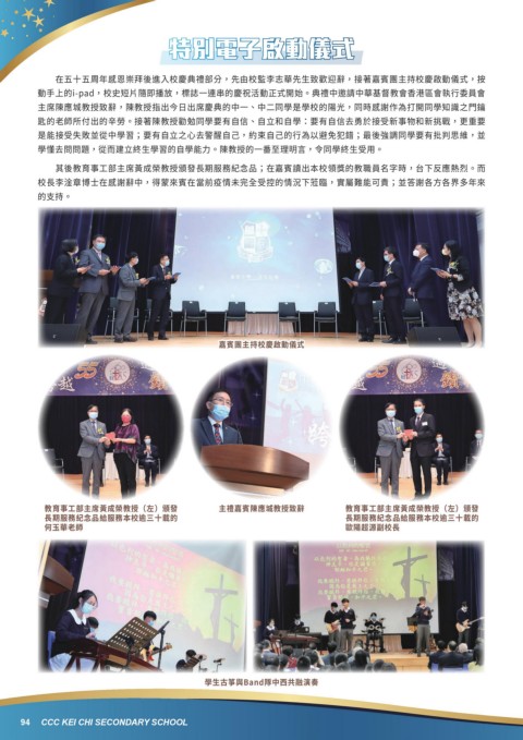 動手上的i-pad,校史短片隨即播放,標誌一連串的慶祝活動正式開始。典禮中邀請中華基督教會香港區會執行委員會