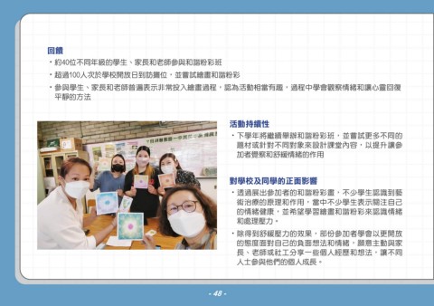 .參與學生、家長和老師普遍表示非常投入繪畫過程,認為活動相當有趣,過程中學會觀察情緒和讓心靈回復