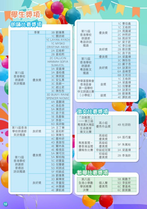 詩詞獨誦 5F 何錦成 數學比賽獎項