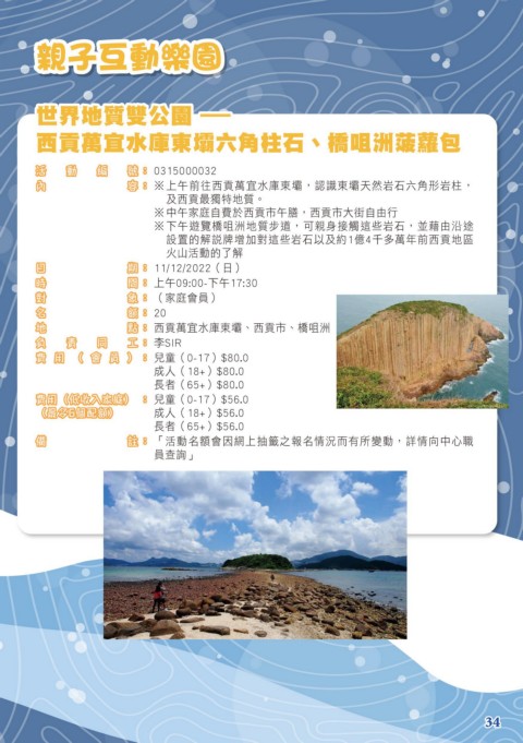 內 容 容 內 : : ※ 上午前往西貢萬宜水庫東壩,認識東壩天然岩石六角形岩柱,