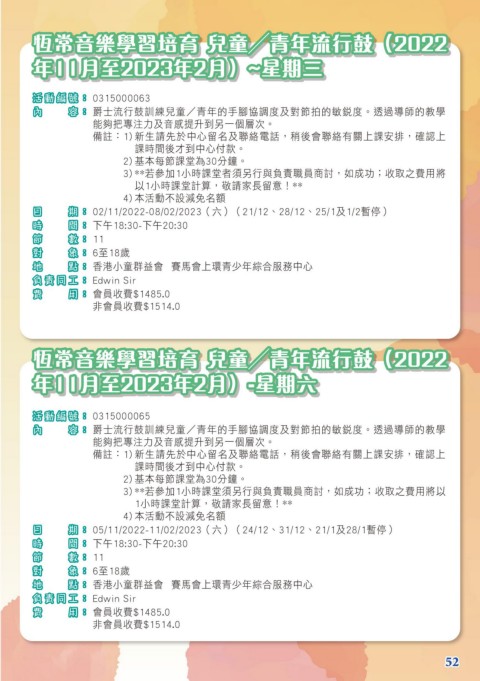 恆 常 音 樂 學 習 培 育 兒 童 ╱ 青 年 流 行 鼓 ( 2 0 2 2