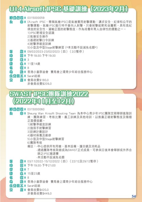 內 容 容 內 : : Sheung Wan Airsoft Shooting Team 為本中心青少年IPSC團隊定期舉辦進階訓