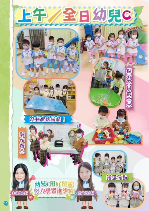 午 幼 兒 / 日 上 上 午 / 全 全 日 幼 兒 C C 不 同 探 索 的 米 同 的 粟 不 米 粟 索 探 ! 滾動實驗遊戲! 滾動實驗遊戲 谷 作 爆 製 爆 谷 製 作 護蛋行動 護蛋行動 精 精 兒 兒 班 C 靈 幼 幼 C 班 好 好 靈 習 習 步 步 努 努 力 力 學 學 進 精 精 進 周芷因老師 李倩盈老師 李倩盈老師 周芷因老師 15