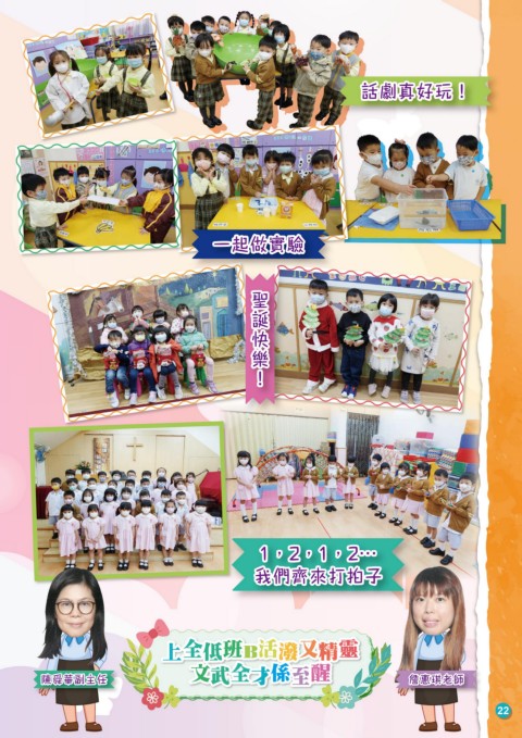 話劇真好玩! 話劇真好玩! 一起做實驗 一起做實驗 快 樂 快 ! 聖 誕 ! 聖 誕 樂 1,2,1,2… 1,2,1,2… 我們齊來打拍子 我們齊來打拍子 活 全 全 班 活 靈 上 上 低 班 B B 潑 又 又 靈 精 精 潑 低 全 文 文 全 係 係 醒 醒 才 詹惠琪老師 陳舜華副主任 武 武 才 至 至 詹惠琪老師 陳舜華副主任 22