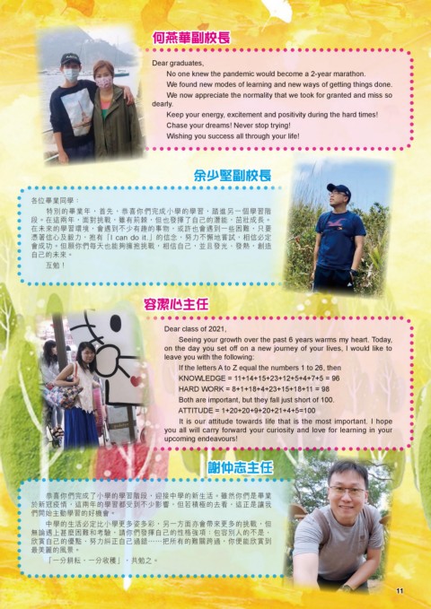 恭喜你們完成了小學的學習階段,迎接中學的新生活。雖然你們是畢業
