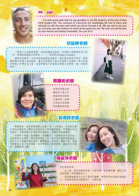 學校樂於培養大家的創意,讓大家發揮自己最大的想像力去學習。衷心希望