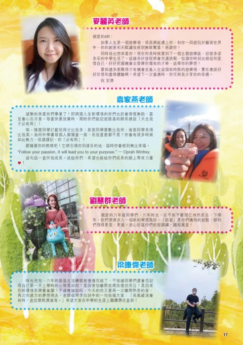 多采的中學生活了。這趟奇妙旅程將會充滿挑戰,但請你時刻也相信和愛