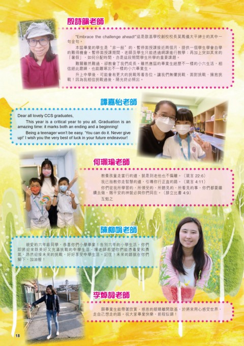 即將迎來既美好又充滿挑戰的中學生活,陳老師希望你們能憑着愛和勇