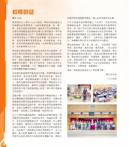 正值學校鑽禧的大日子,我滿懷喜悅及感恩,多謝各 供教學資源和舉辦多元化活動和講座,讓學生認識中