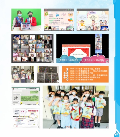 11 12 13 14 15 11 2020-2021年度「好事傅千里」廣播站 12 2020-2021年度服務學習—愛心共融學生講座 13 - 14 2020-2021年度貧富體驗活動 15 - 17 2020-2021年度愛心之旅—網上長者探訪活動 18 - 19 2020-2021年度我的服務日誌學生佳作 20 2021-2022年度我的自律手冊 16 17 18 19 20 P54 P54