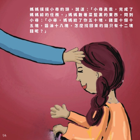 媽 媽 給 的 任 務 。 」 媽 媽 數 著 菜 籃 裏 的 東 ⻄ , 問 到