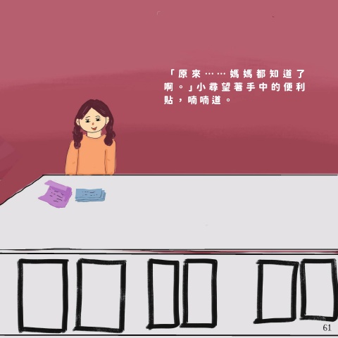 「 原 來 … … 媽 媽 都 知 道 了 啊 。 」 小 尋 望 著 手 中 的 便 利 貼 , 喃 喃 道 。 61