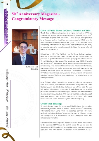 Principal and for giving me the opportunity to celebrate HTYC’s 50