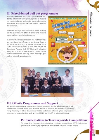 develop their potential. Every year, a certain number of students are admitted to the Hong 校 刊 念 十 五 周 紀 年