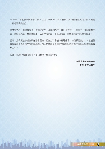 事局成員)長久以來的忠誠服務。本人亦感謝現任副會長容樹恆教授百忙中參與Fit總的董事