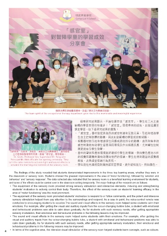 Dr. Szeto, Pro fessor Sin, Su pervisor Mr. To ng and 的視覺和聽覺刺激有助穩定他們的情緒。學生在得到適當的感覺調