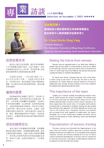 了。司徒博士希望將來感官室的發展能擴展至課 hopes to extend the development of sensory rooms to classrooms