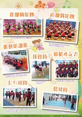 初級舞蹈團 高級舞蹈團 學校初級舞蹈團的同學在翩翩起舞。 視藝培訓組 準備參加校際舞蹈節比賽。 學校高級舞蹈團的同學在加緊訓練, 校園小記者 田徑隊 我們所繪畫的藍天白雲和巨大太陽,讓 人感覺到今年的冬季份外溫暖及舒暢。 乒乓球隊 田徑隊員在練習 看我們校園小記者陣容多強盛! 交接棒技巧。 籃球隊 乒乓球隊隊員正在用心練習,準備參加 校際的乒乓球比賽。 籃球隊員都認真地練習,打好基礎。 11