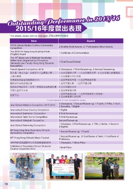 68 Hong Kong Schools Music Festival 1 Second Runner-up, 12 Certificates of Merit, 1 Certificate of