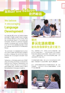 (taught in Cantonese) and French are offered 多元化語言環境,