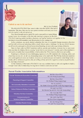 As the Chairlady of this term’s PTA EXCO, I am very confident that we will work together to build a