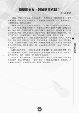 縮懶惰的藉口。漫長人生,我認為每個人都應該「面對最後,爭取第一」。 是獨自學習,沒有朋友互相切磋解難,人便會淺陋而見識不廣。我對「獨學而無友,