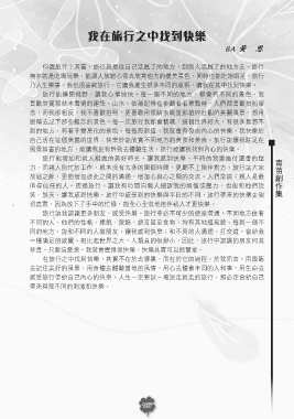 方的不足,同時對方亦會指出你的漏洞,這正正幫助大家進步,邁向成功的道路,把 旅行能增加和親人相處的美好時光,讓我感到快樂。平時的我要應付讀書的壓