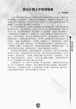 功,同時帶給我無比的快樂。只要你付出了努力和艱辛,並享受整個過程,你就會感 利的喜悅,隊友對我說:「你真棒!能贏到比賽,你功不可沒!」我對她說:「怎麼