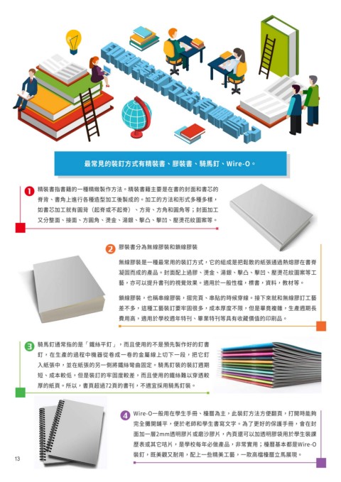 最常見的裝釘方式有精裝書、膠裝書、騎馬釘、Wire-O。